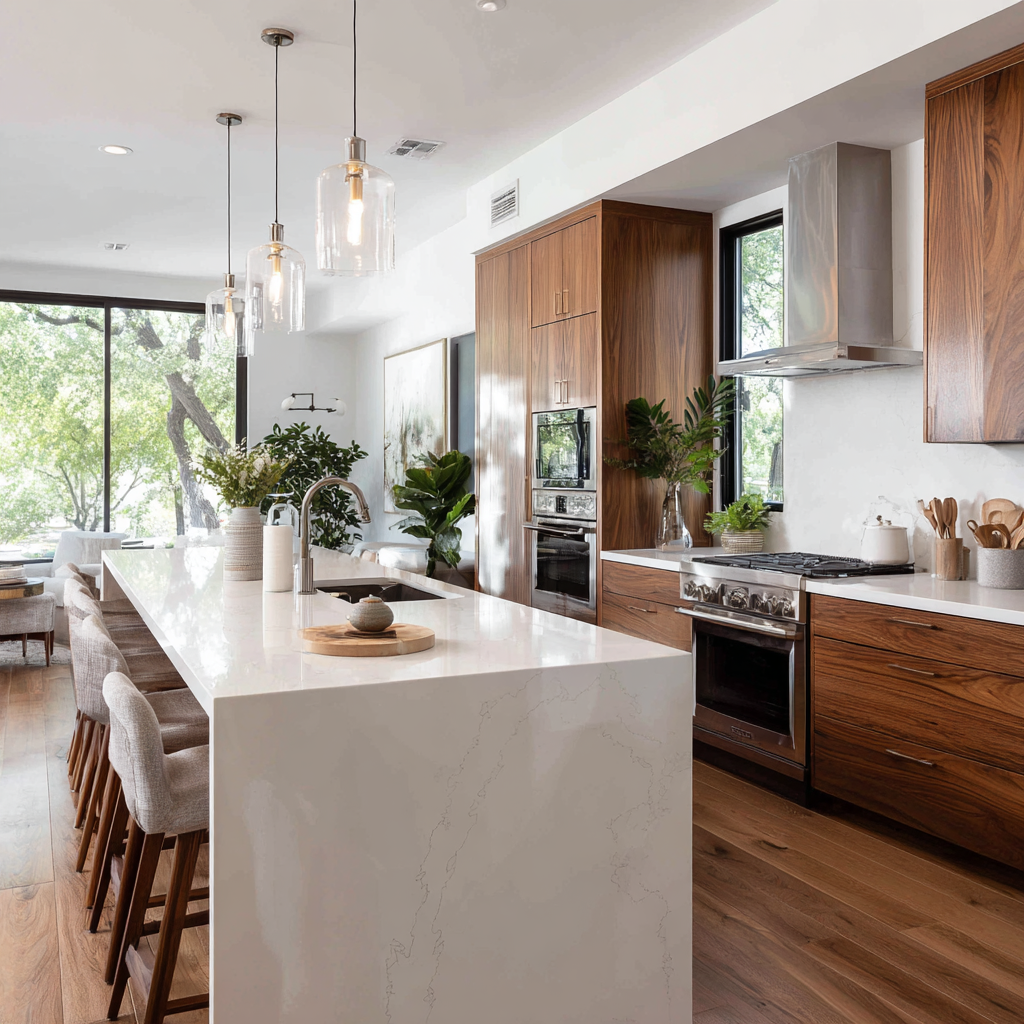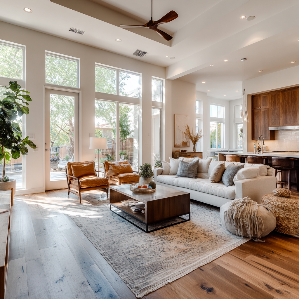• Open-concept floor plan with modern finishes